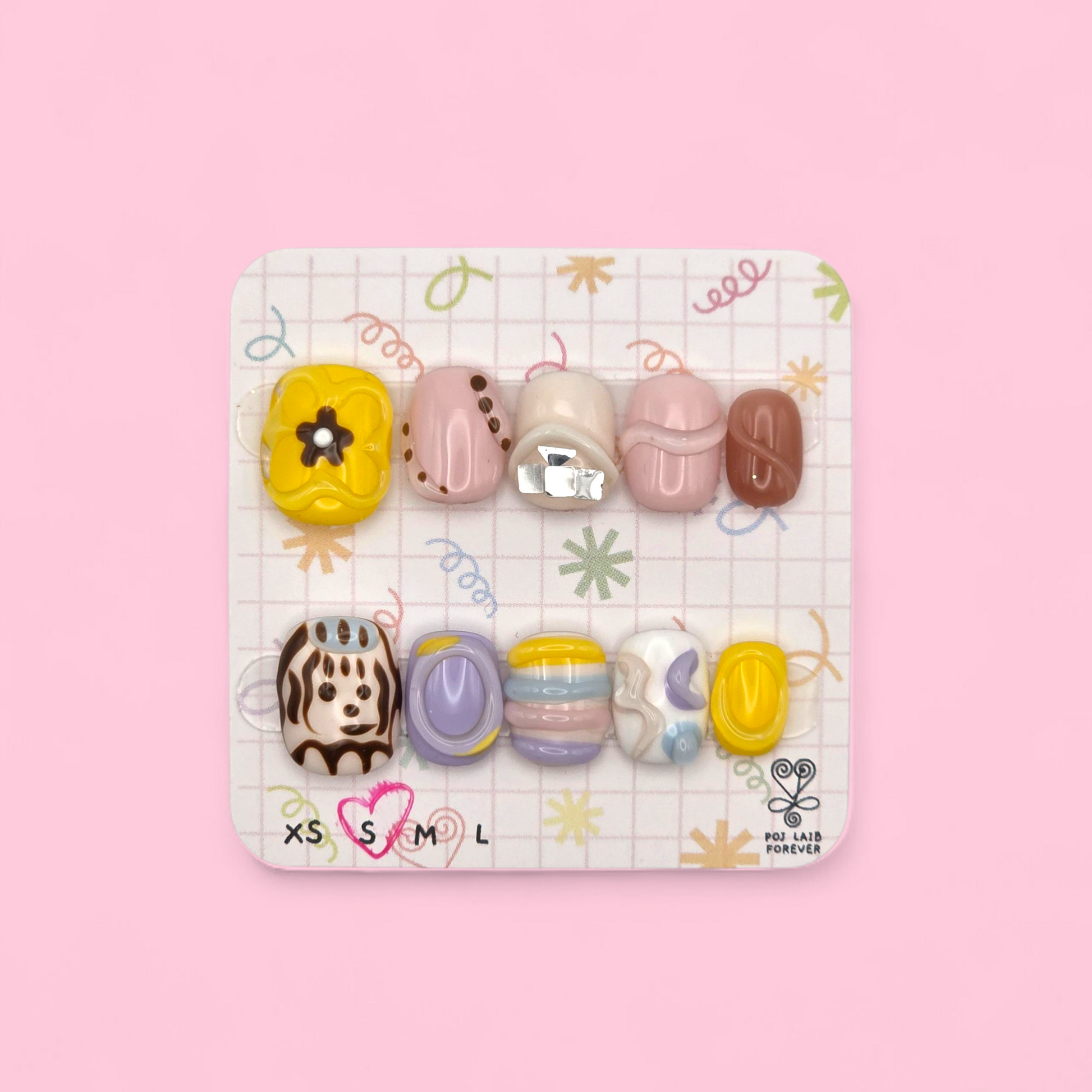 A mix of coffee tones, creamy swirls, and sugary accents that look straight out of a café display case. This set feels like sipping your favorite caramel latte while eyeing a box of fresh donuts. It’s playful, cozy, and totally made for those sweet treat days.