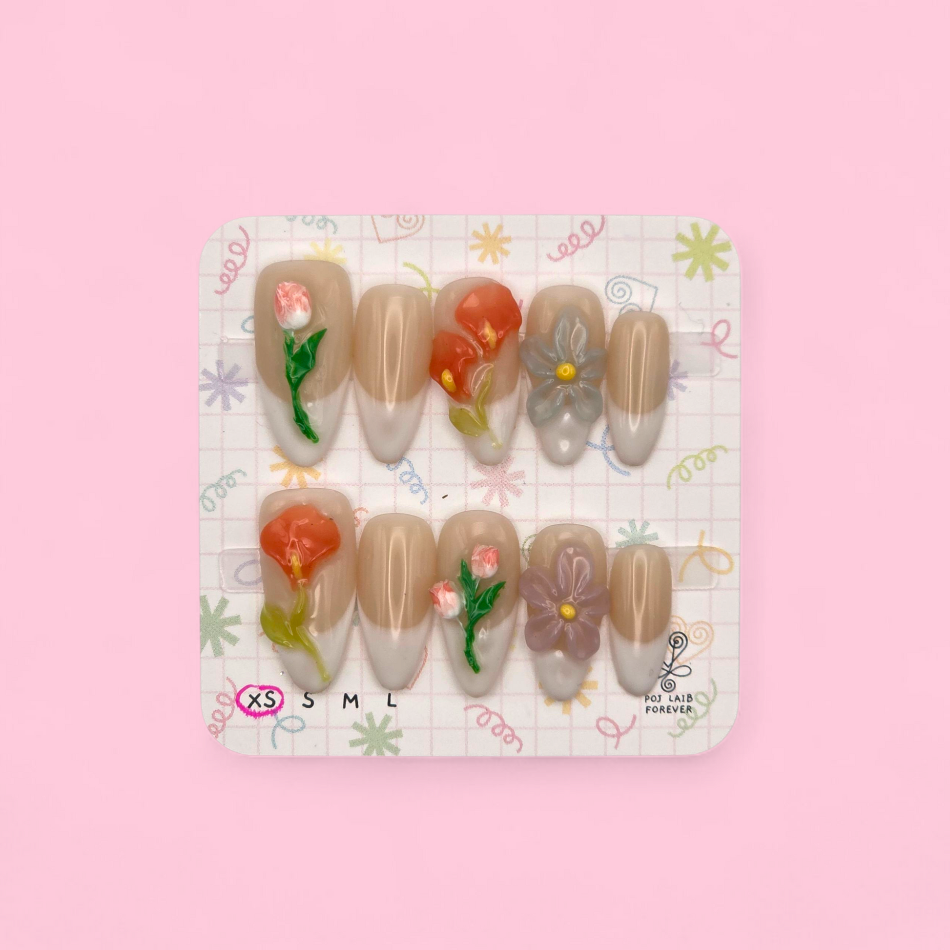 Bring the garden to your fingertips with this playful set full of 3D blossoms in coral, lilac, and rosy tones. It is cute, bold, and bursting with flower power that makes every outfit pop. Wear it when you want to feel like the ultimate blooming babe fun, fresh, and totally unforgettable.
