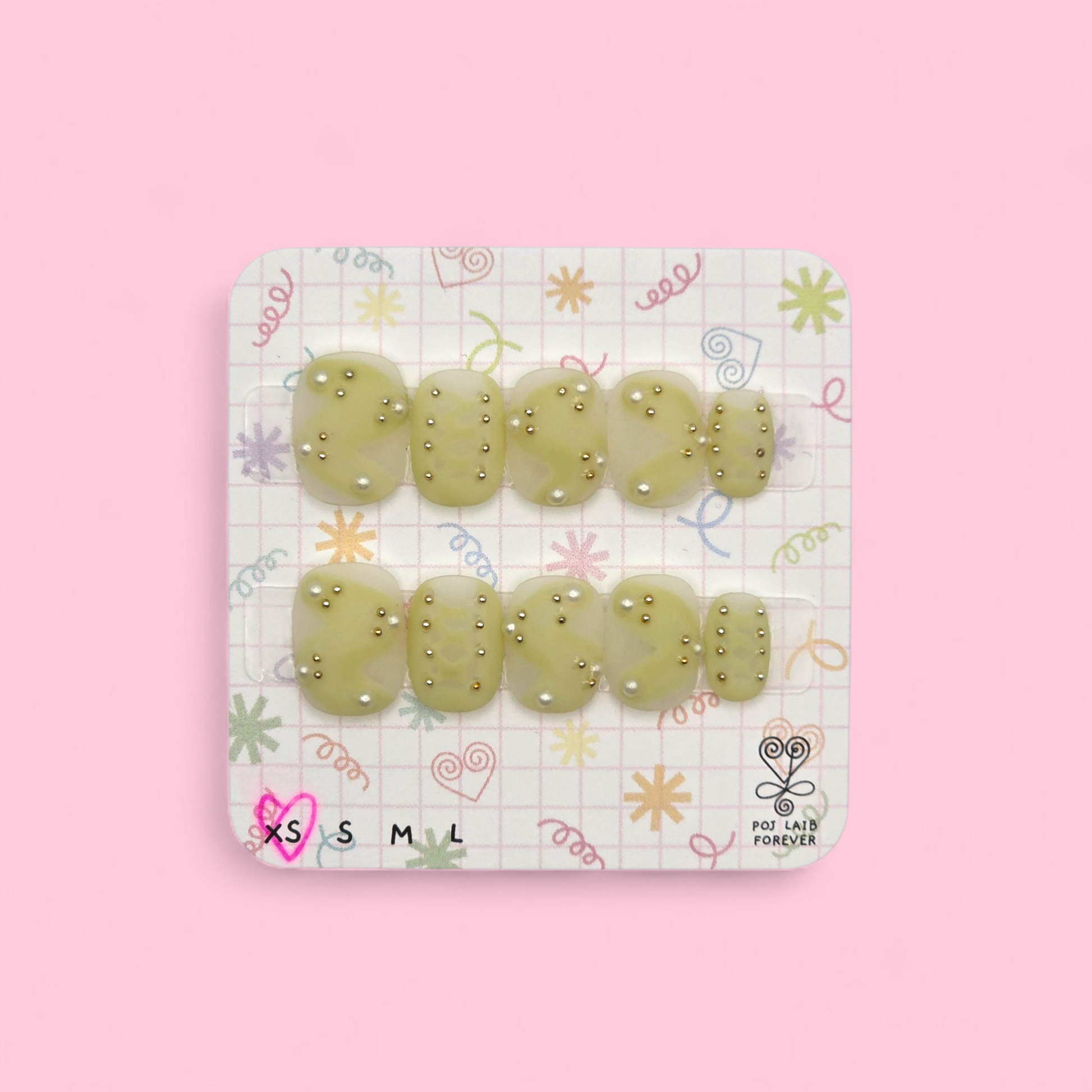 Golden tones meet playful studs for a look that’s both sweet and sassy. These nails add just the right amount of shine without being over the top. Perfect for when you want an easy pop of style that sparkles in every light.