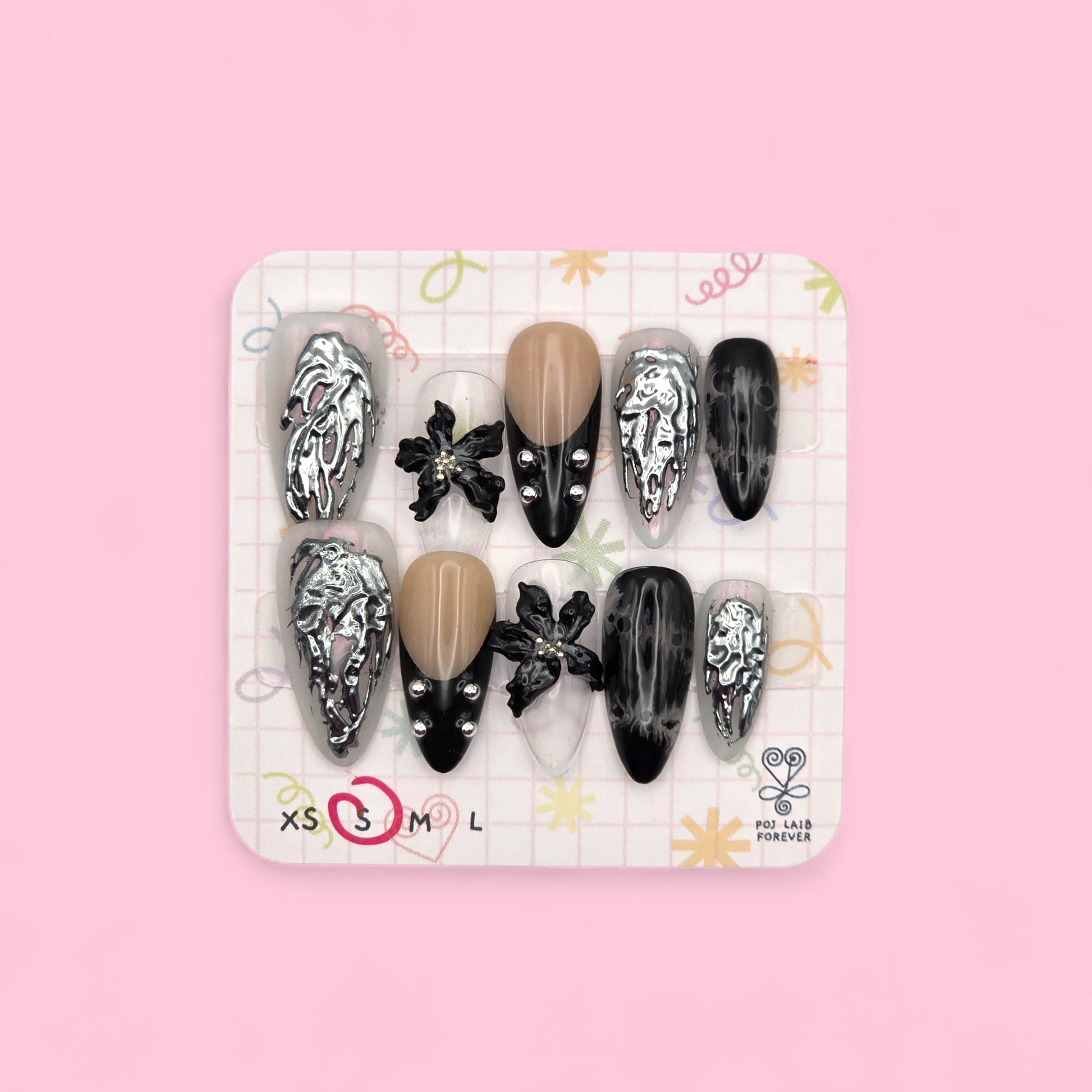 Own your power with this daring black-and-silver set that’s dripping in attitude. The bold chrome accents and sculpted 3D details make it the perfect mix of glam and rebellion. Whether you’re feeling fierce or just want to turn heads, this set says you’re in control.
